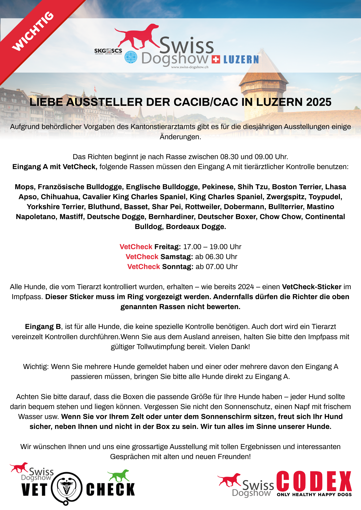 SAMSTAG Nachmittag ab 12.00Uhr CACIB/CAC